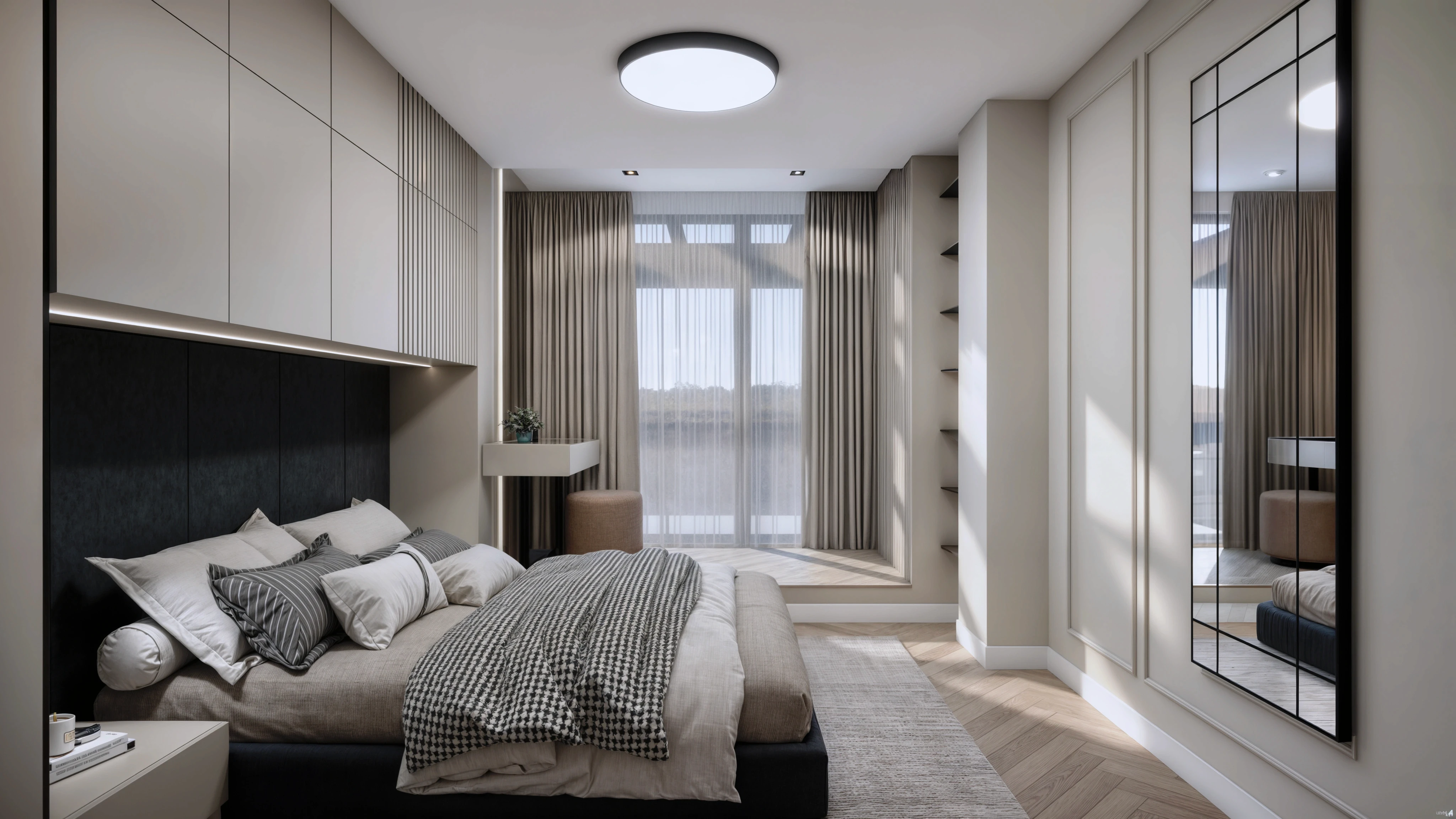 Проектът е разработен специално за нуждите на младите хора, търсещи модерна и функционална среда. Апартаментът, разположен на покривния етаж на нова сграда в кв. „Христо Смирненски“, предлага уникално съчетание от уют и простор. Водеща нишка в дизайна е постигането на хармония между отделните зони на обитаване и свободните пространства, което осигурява комфорт и гъвкавост за обитателите.