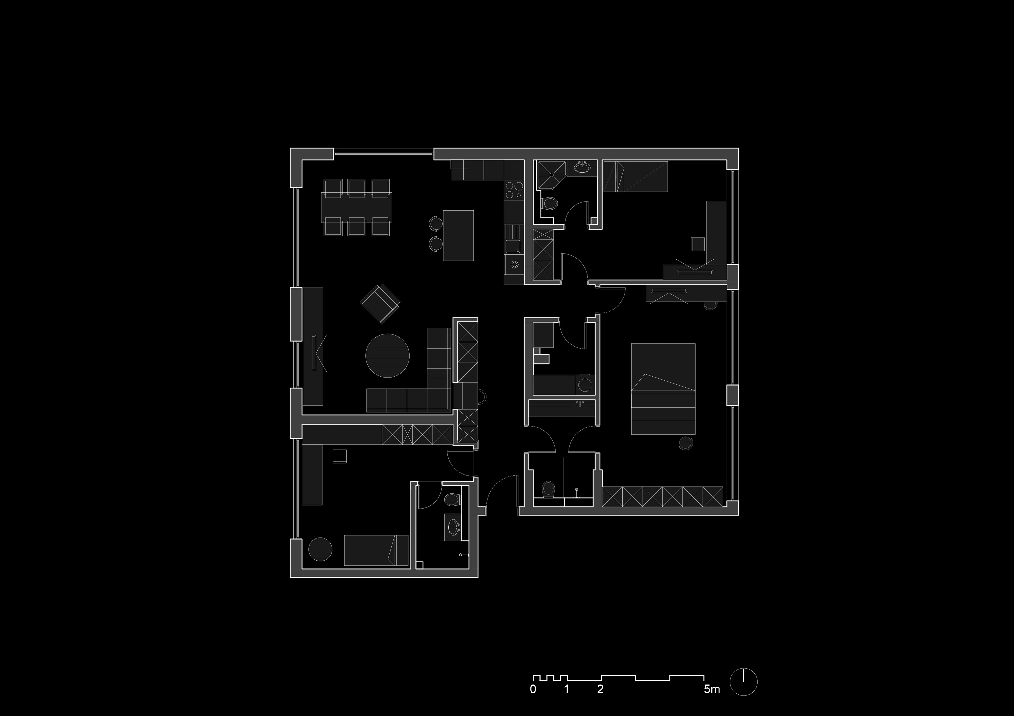 Настоящият проект за интериорен дизайн има за цел да осигури най-подходящата среда за младо, но голямо семейство. Жилището заема покривния етаж на една от новите сгради в бурно развиващия се район на гребната база. Водеща насока в цялостното проектиране на този апартамент е правилното балансиране между отделните зони на обитаване и свободните простраснтва за игра на децата.