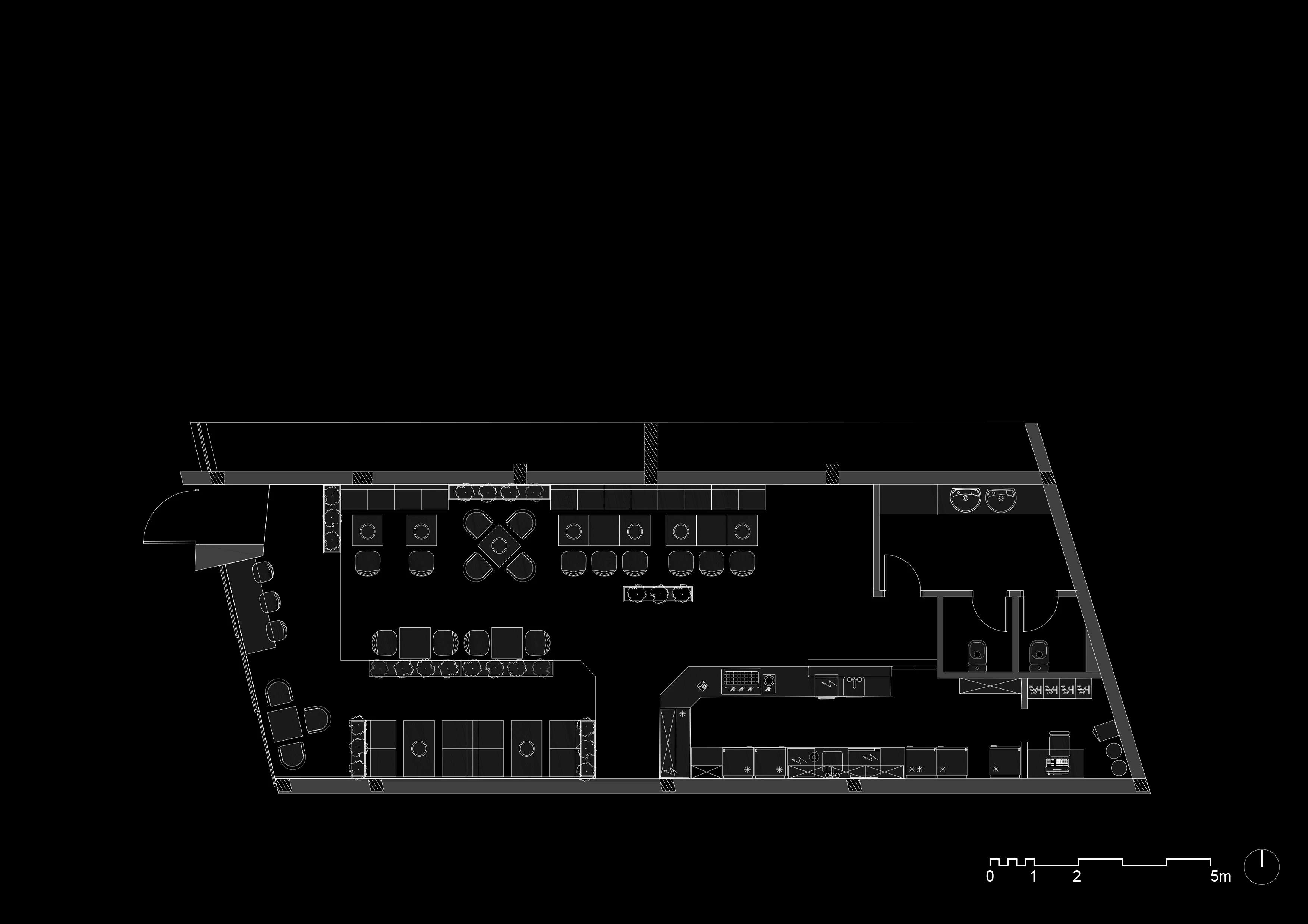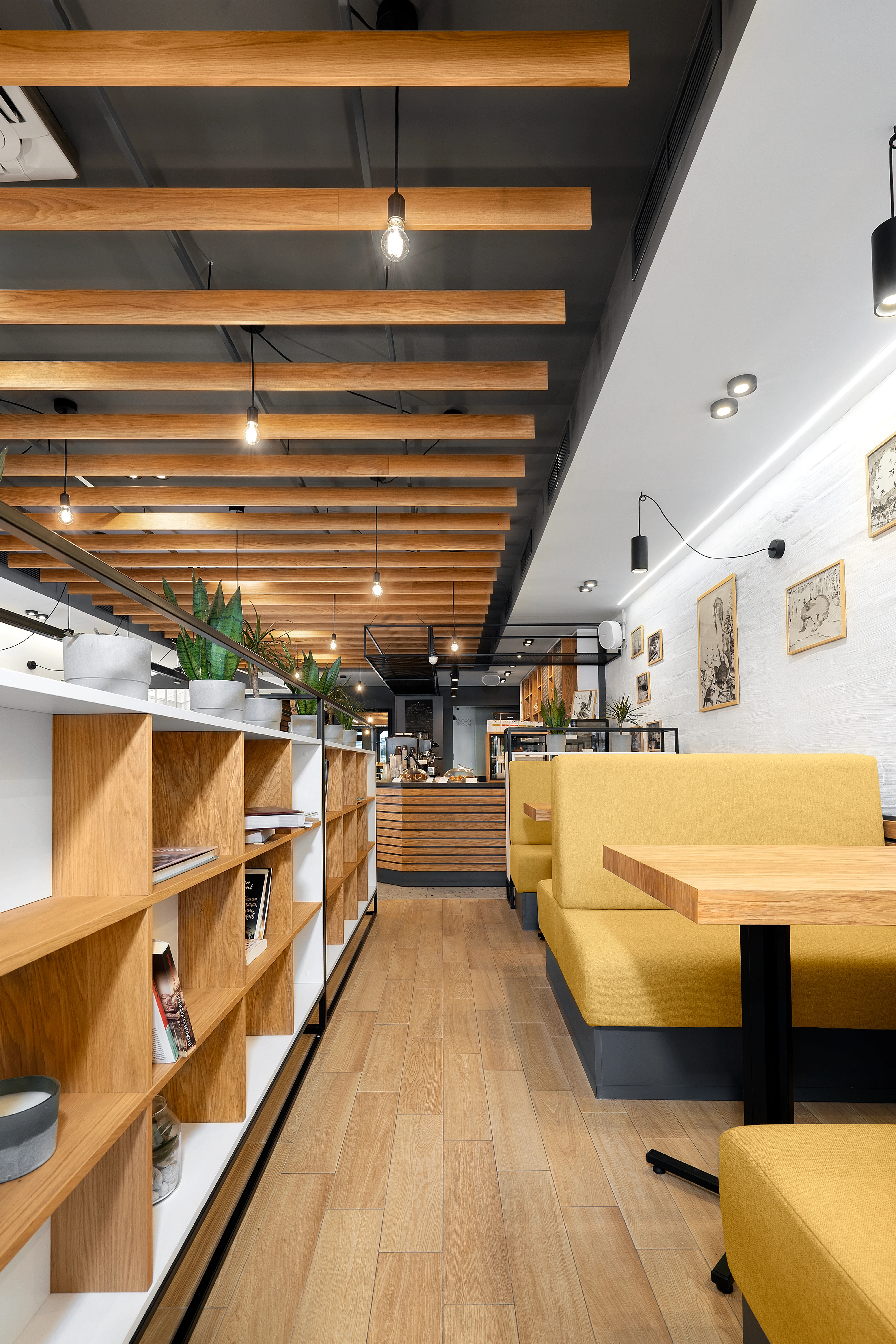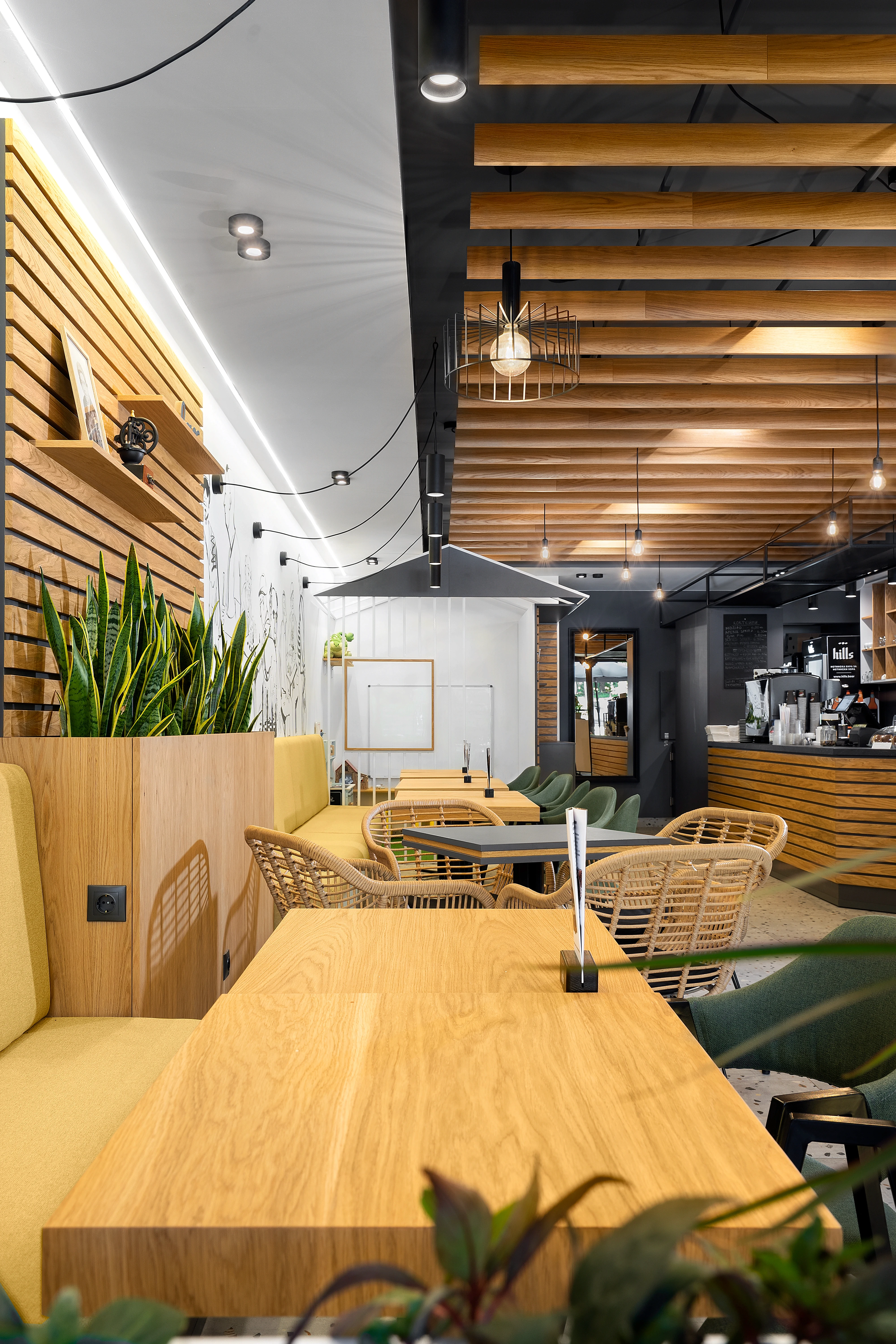 Съвременният прочит на този дух задава и лайт мотива на проекта за интериорен дизайн. Знаменитият пловдивски “айляк” намира своето отражение в небрежно грубите мазилки по стените, избелелия паркет и множеството култови, протрити от четене книги по рафтовете в заведението. Намигването към традиционните за градската среда пейки, кашпи, оголени крушки и лампи, надвисващи от стените, допълва характерната атмосфера на “Дъра-Бъра”.