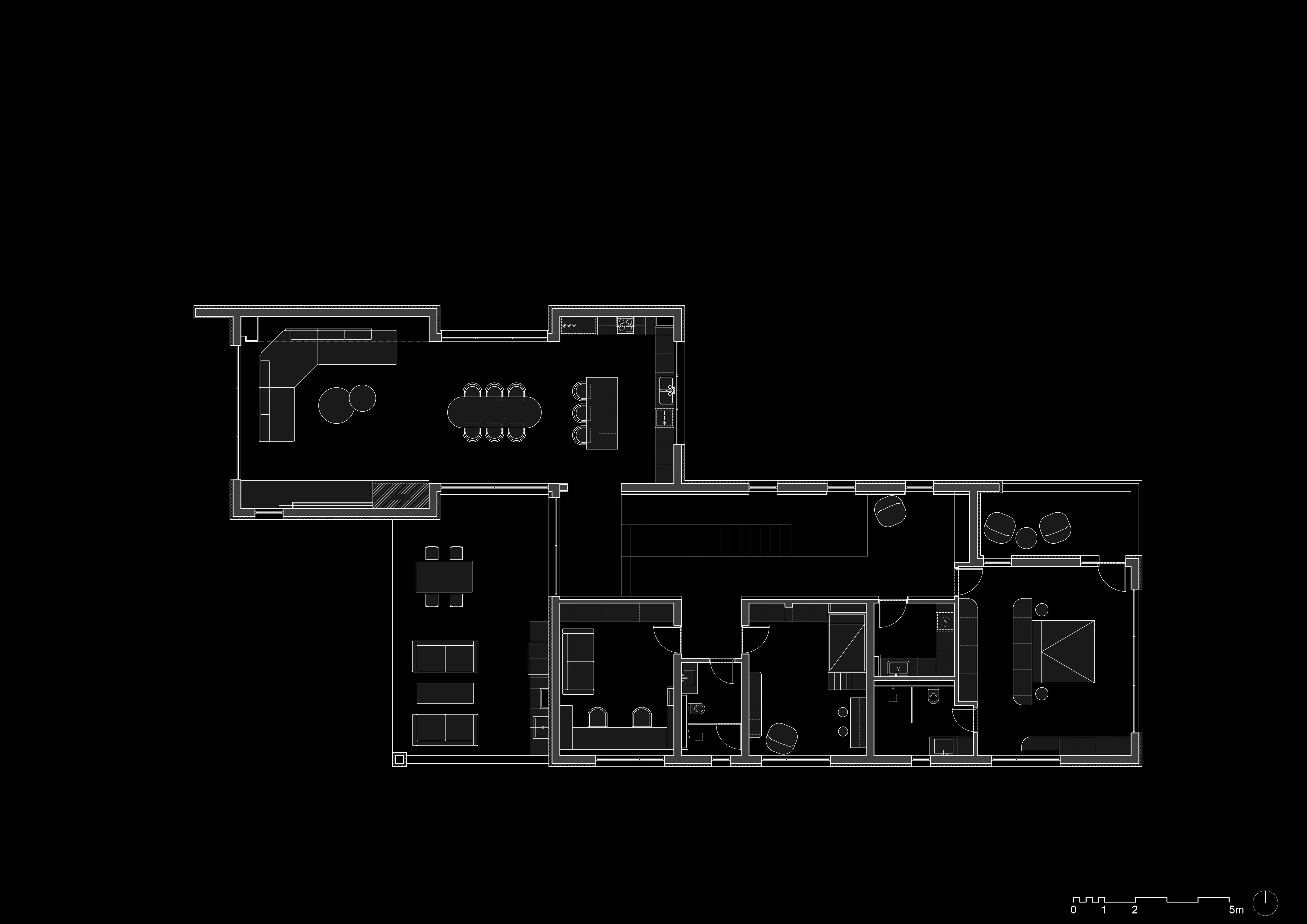 В основата на проекта е прецизният анализ на терена. Проучихме слънцестоенето, ориентацията и панорамните гледки, за да позиционираме сградата оптимално. Този подход ни позволи да осигурим максимална естествена светлина и висока енергийна ефективност, като същевременно гарантираме комфорт и качество на живот.