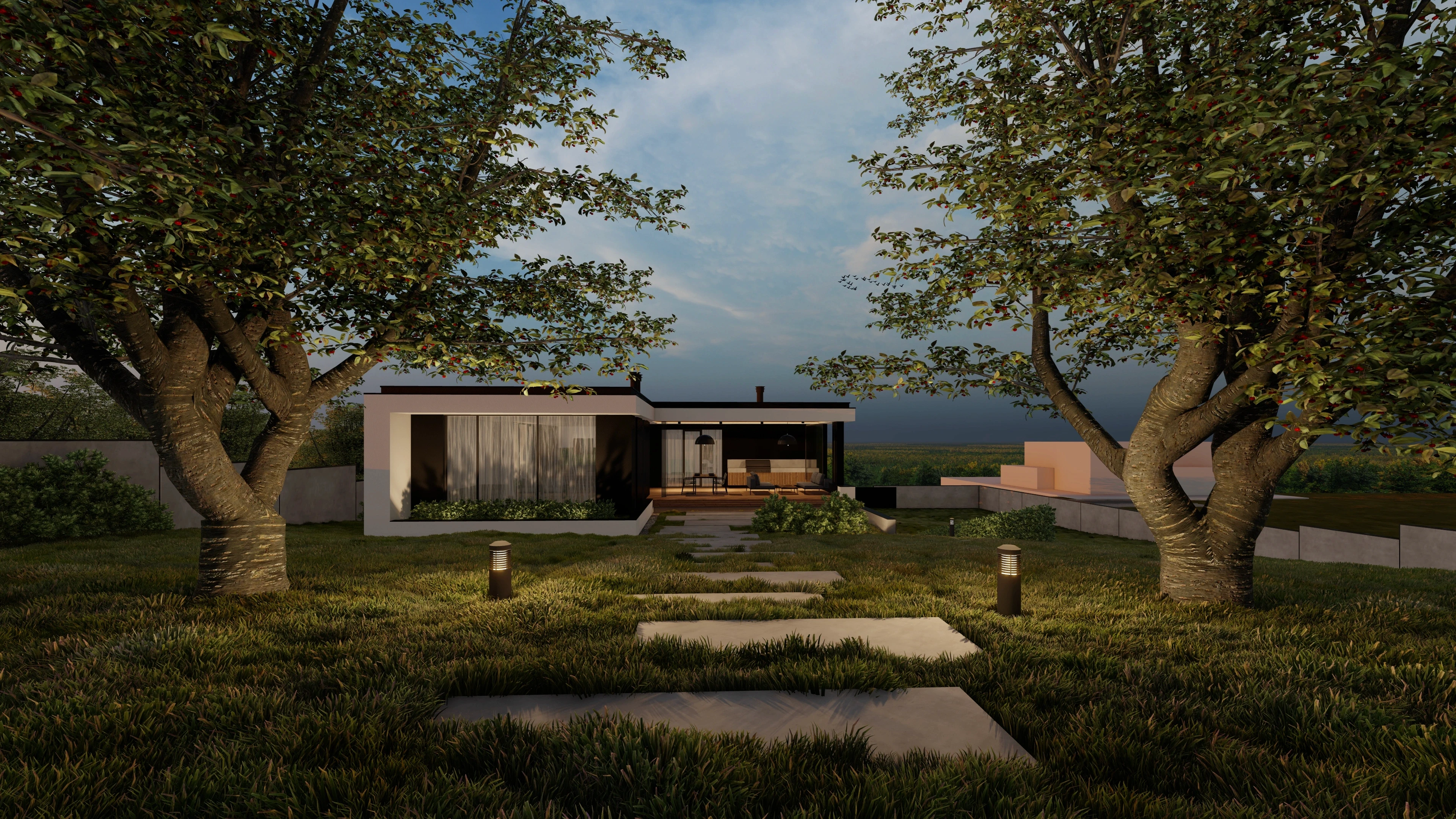 В основата на проекта е прецизният анализ на терена. Проучихме слънцестоенето, ориентацията и панорамните гледки, за да позиционираме сградата оптимално. Този подход ни позволи да осигурим максимална естествена светлина и висока енергийна ефективност, като същевременно гарантираме комфорт и качество на живот.