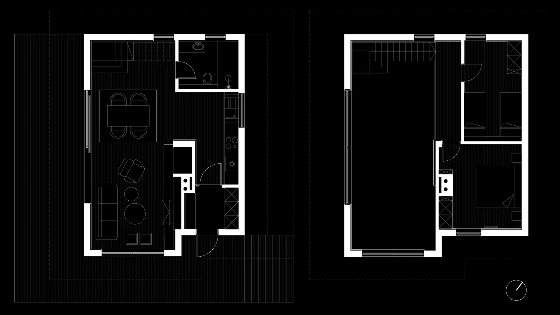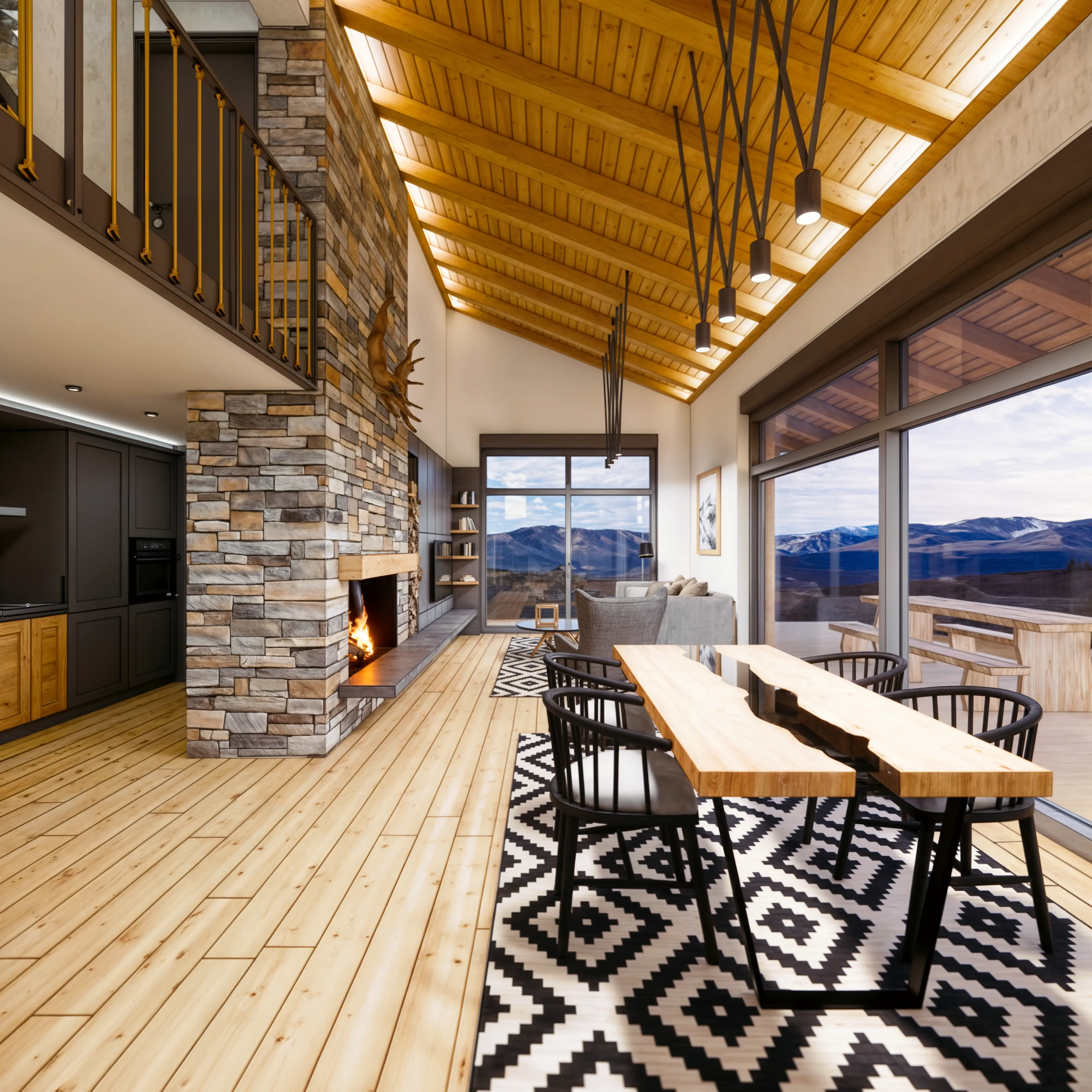Къщата разполага с две спални, дневна с двойна височина и разбира се просторна веранда. Камината в сърцето на интериора подсилва усещането за планинска хижа, докато обширните, плъзгащи витрини размиват границата вън-вътре.