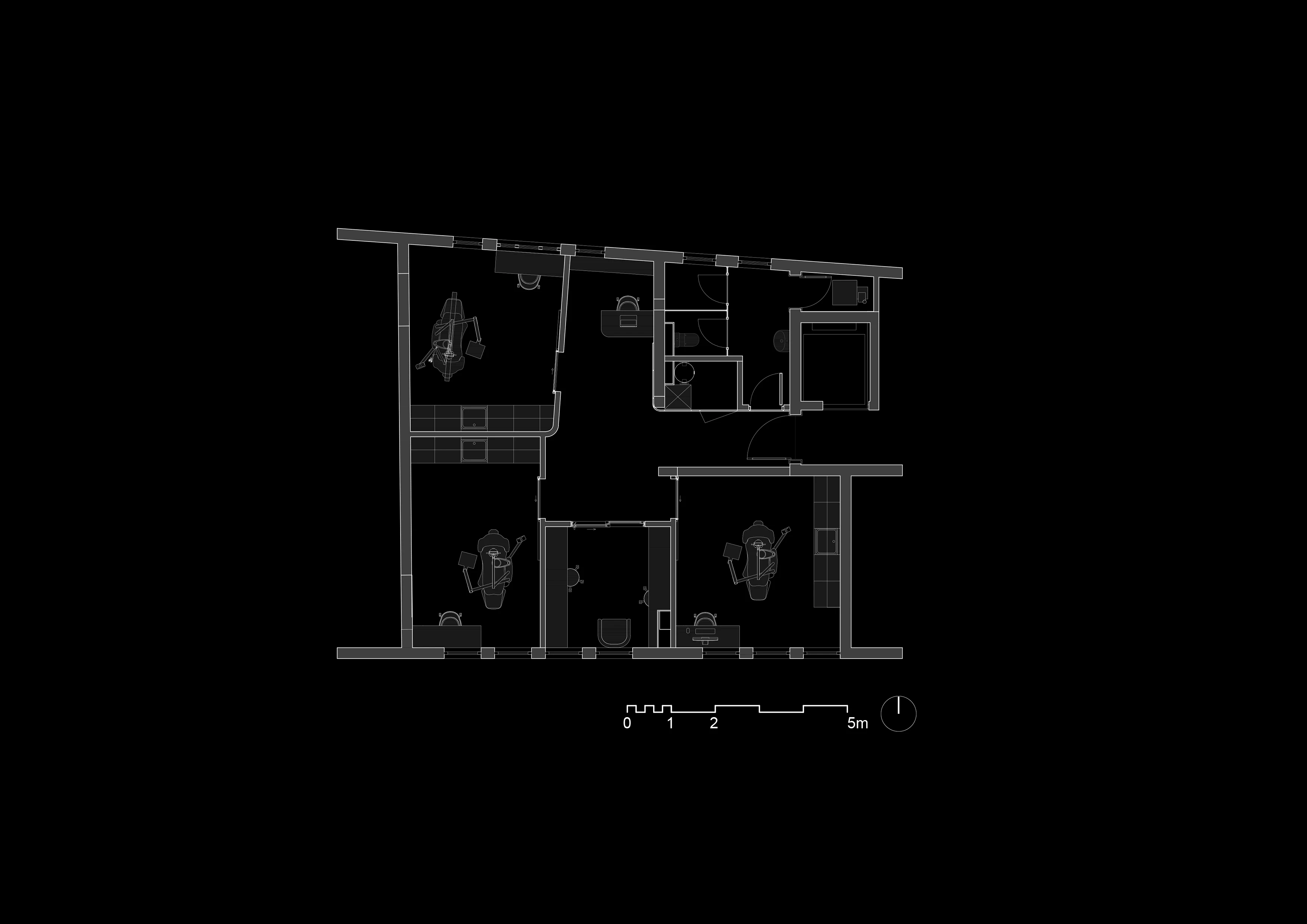Проучването целеше оптимизация на пространството според медицинските стандарти. Основната задача беше ефективното разпределение на три самостоятелни кабинета, антре с рецепция и административна зона. Фокусът беше върху осигуряване на безконфликтни ходови линии и максимално проникване на светлина.